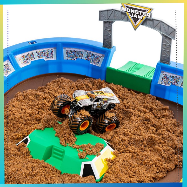 ● Easy-to-use, easy-to-clean synthetic dirt inspired by real Monster Jam arenas