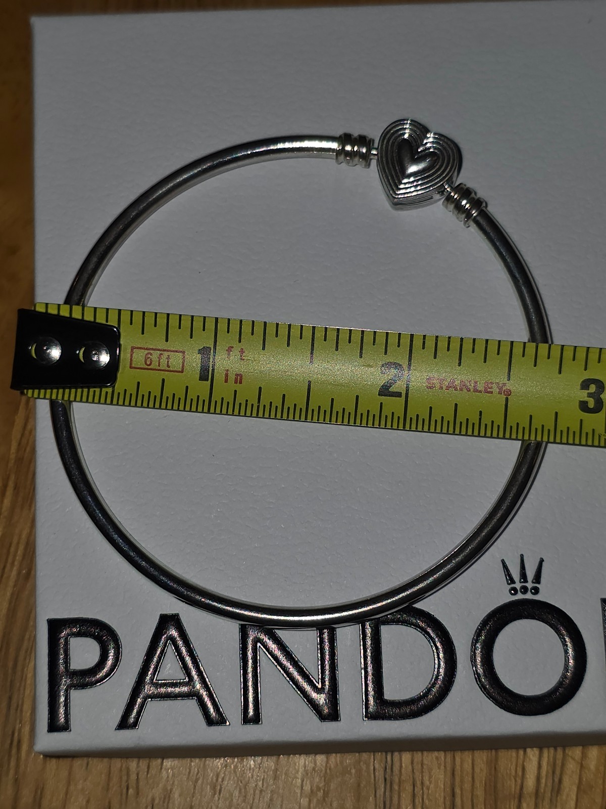 BRAND NEW, This sale is for one bangle only. This sterling silver bangle has a heart-shaped clasp with a cut-out heart on one side -a design that pays tribute to the power of love. Made to be styled with a maximum of 16 to 18 charms or dangle charms, this bangle will become a staple in any collection. I am unsure as the wrist size. It's a smaller size.