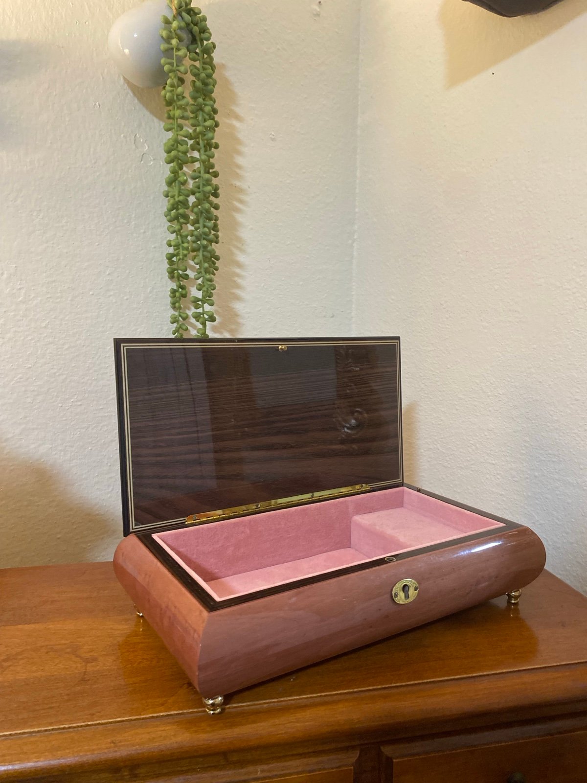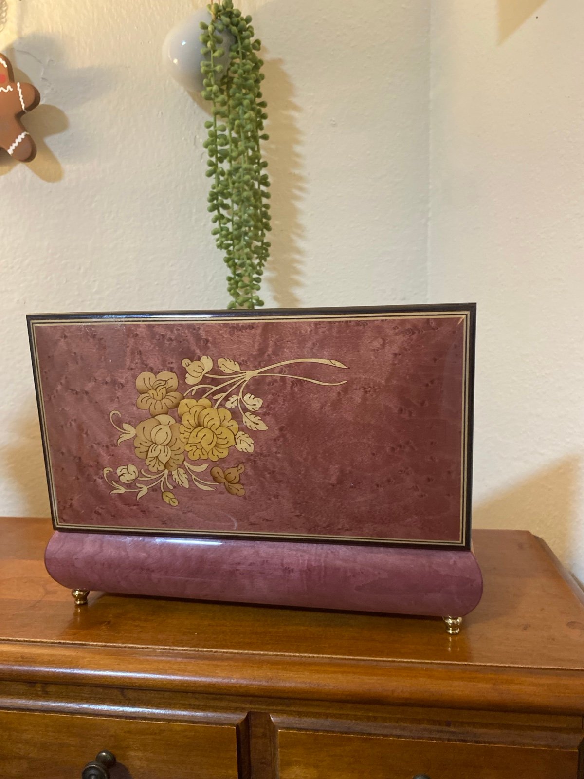 The Reuge Rosewood Swiss Music Jewelry Box is a handmade collectible from Switzerland, featuring intricate floral designs on rosewood with brass legs. Serves as a decorative piece in any room. With its high-quality craftsmanship and timeless design, this jewelry box is a perfect addition to any collector's inventory, representing the brand's reputation for excellence in craftsmanship.