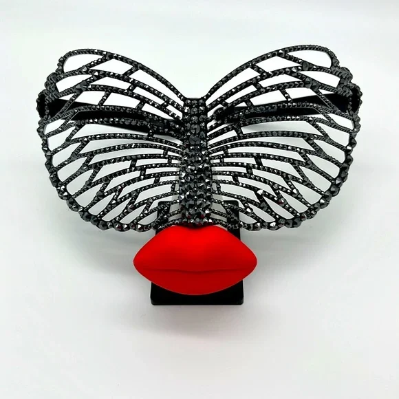 Elevate your accessory game with this glamorous masquerade mask from Jimmy Crystal New York — known for bold design, meticulous craftsmanship, and signature sparkle. Hand-embellished with genuine Swarovski crystals, offering a stunning, high-fashion look that catches the light (and attention) wherever you go.This Mask from a sample collection and may have minor imperfections, but nothing that impacts their overall beauty or wearability. Perfect for anyone who loves unique, statement-making eyewear.Please review photos carefully before purchasing. All sales final.